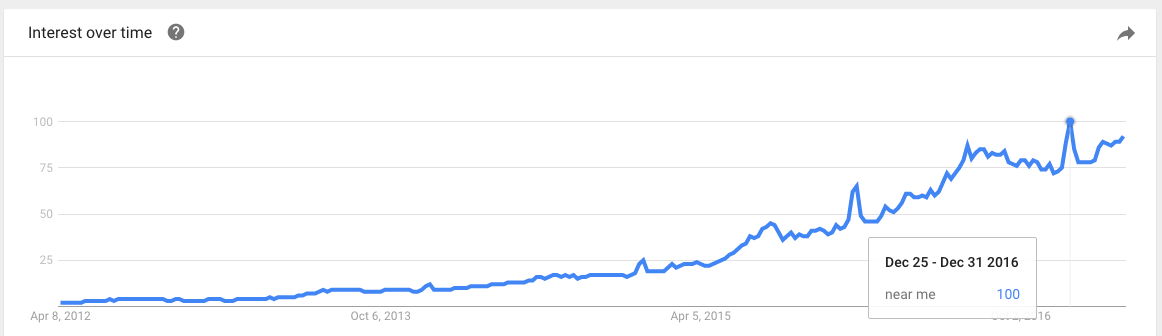 The semantic web can be a powerful tool for local businesses. And if you're a local business, you need to take advantage of its abilities; the popularity of “near me” keywords is growing like gangbusters every year: